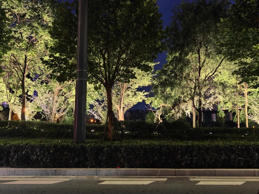 施工过程中,照树重点被放在每一个灯具的调整上——避免对行人的眩光干扰,让游线更加惬意舒适。我们对灯具进行隐蔽安装,以做到白天看不见灯具,晚上见光不见灯,为行人打造舒适的夜游赏景氛围。