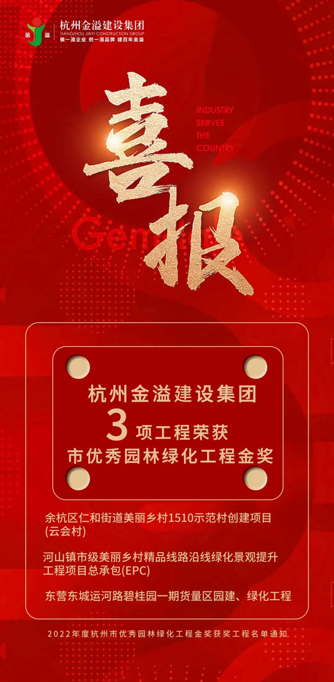 近日,杭州市园林绿化行业学会公布了2022年度“杭州市优秀园林绿化工程”金奖的通知,通过层层筛选,经过材料初审、指标评定和社会公示等环节,由金溢承建的多项工程获此殊荣。