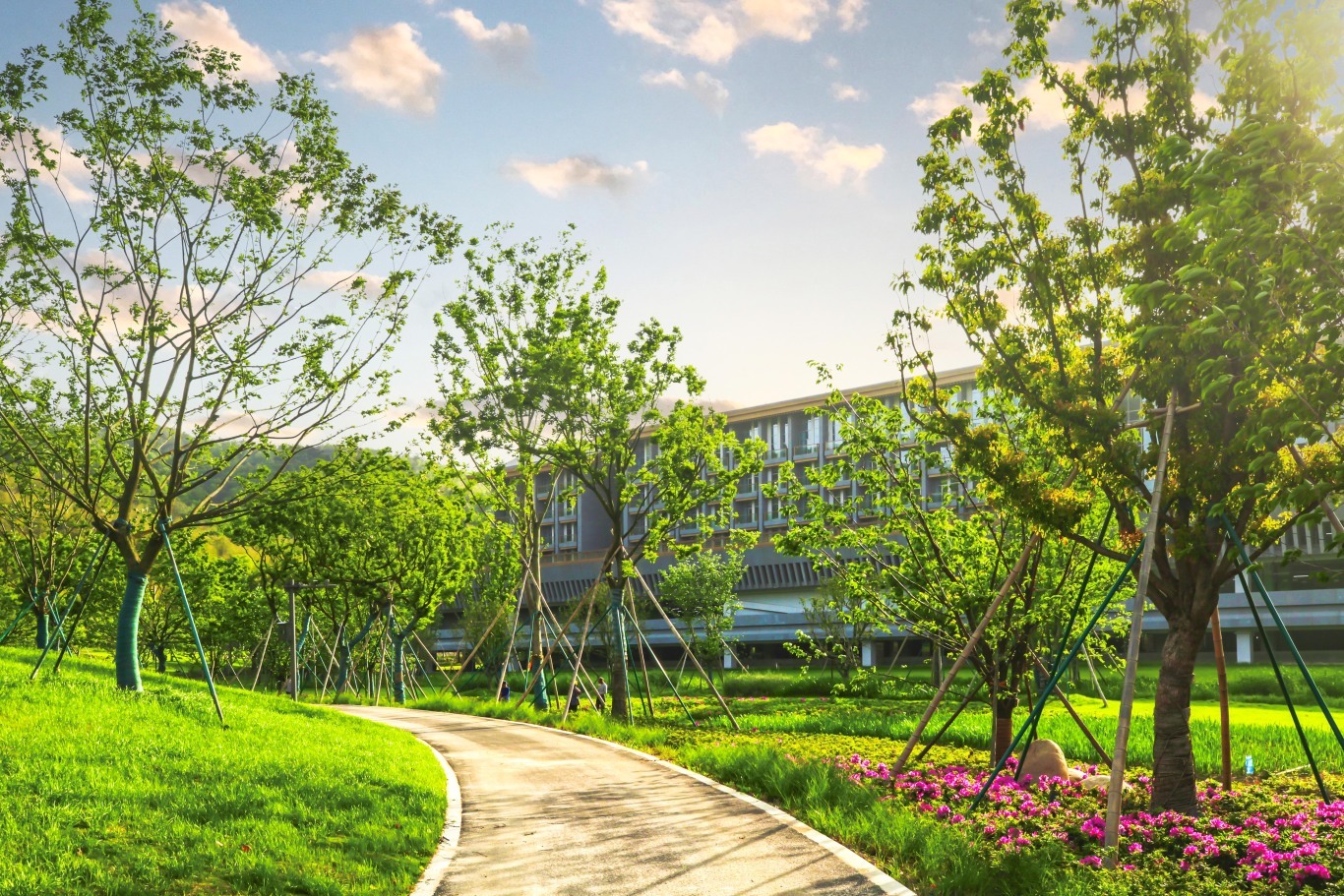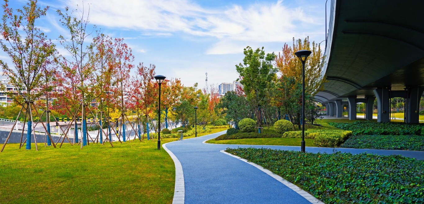 杭州国际博览中心屋顶花园是一座规模宏大、技术先进的绿色生态空间,其绿地面积逾5万平方米,园内栽种了超1万株乔木与灌木,以及超过100万株色块苗木,植被层次丰富,绿意盎然。